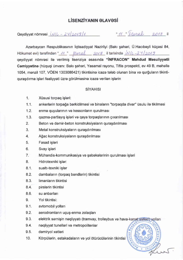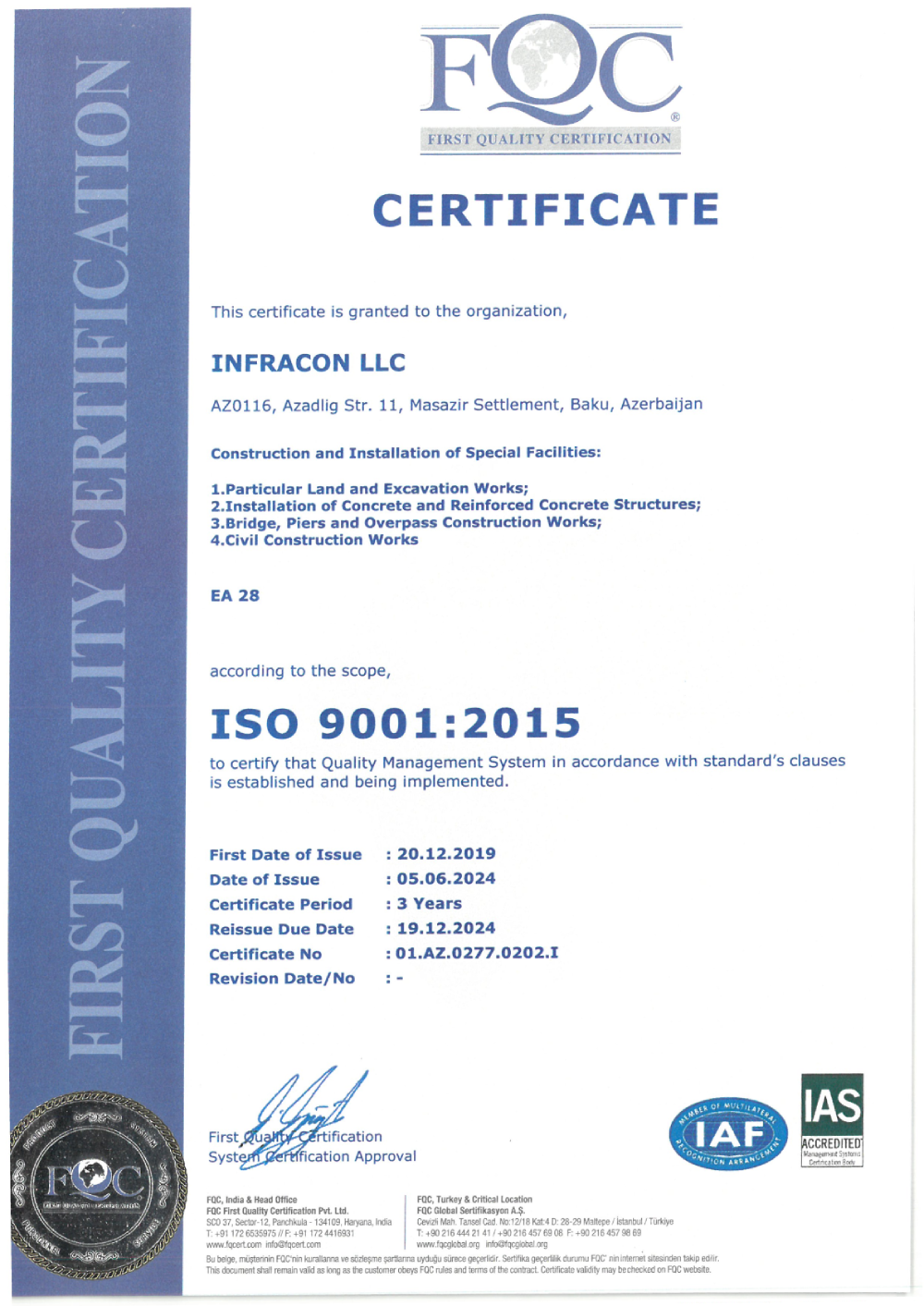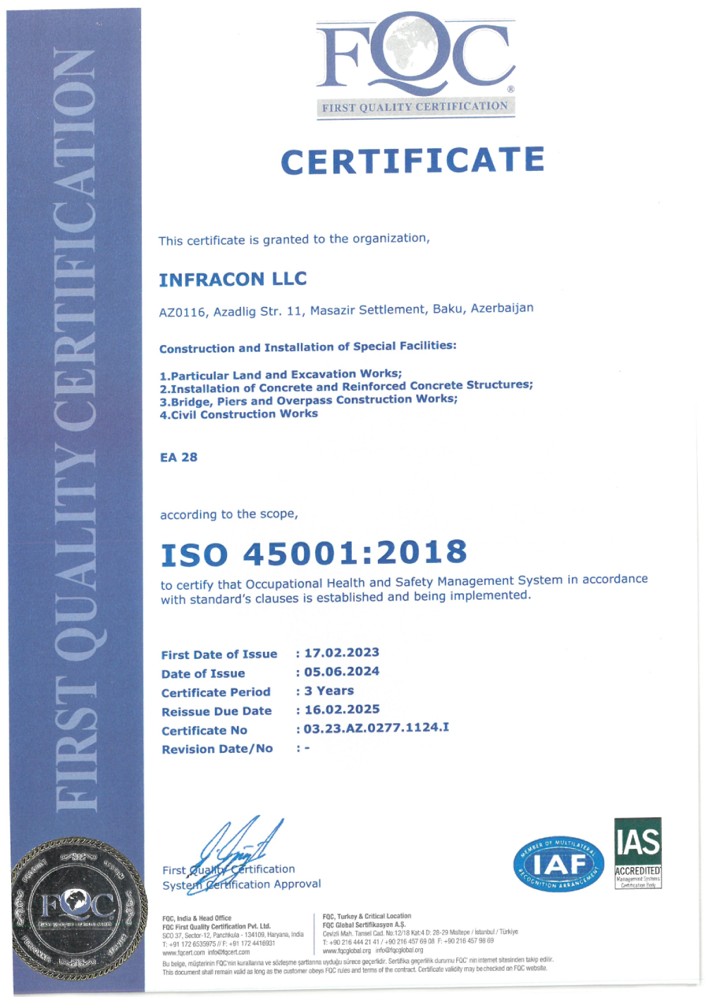İNFRACON MMC-nın əvvəlki adi “Çukurova Su-Istilik Quraşdırma BM” MMC olub, 2012-ci ildə Dünya sektorunda böyük İnşaat təcrübəsi olan Çukurova və Siqma tərəfindən Azərbaycanda qeydiyyatdan keçmişdir. Müəssisə 2013-cü ildən ölkənin infrastruktur əsaslı tikinti sektorunda müxtəlif tikinti və quraşdırma işləri həyata keçirir. Müxtəlif sahələrdə və şəraitlərdə layihələrin həyata keçirilməsində çox funksiyalı təcrübəmiz əsas amildir.